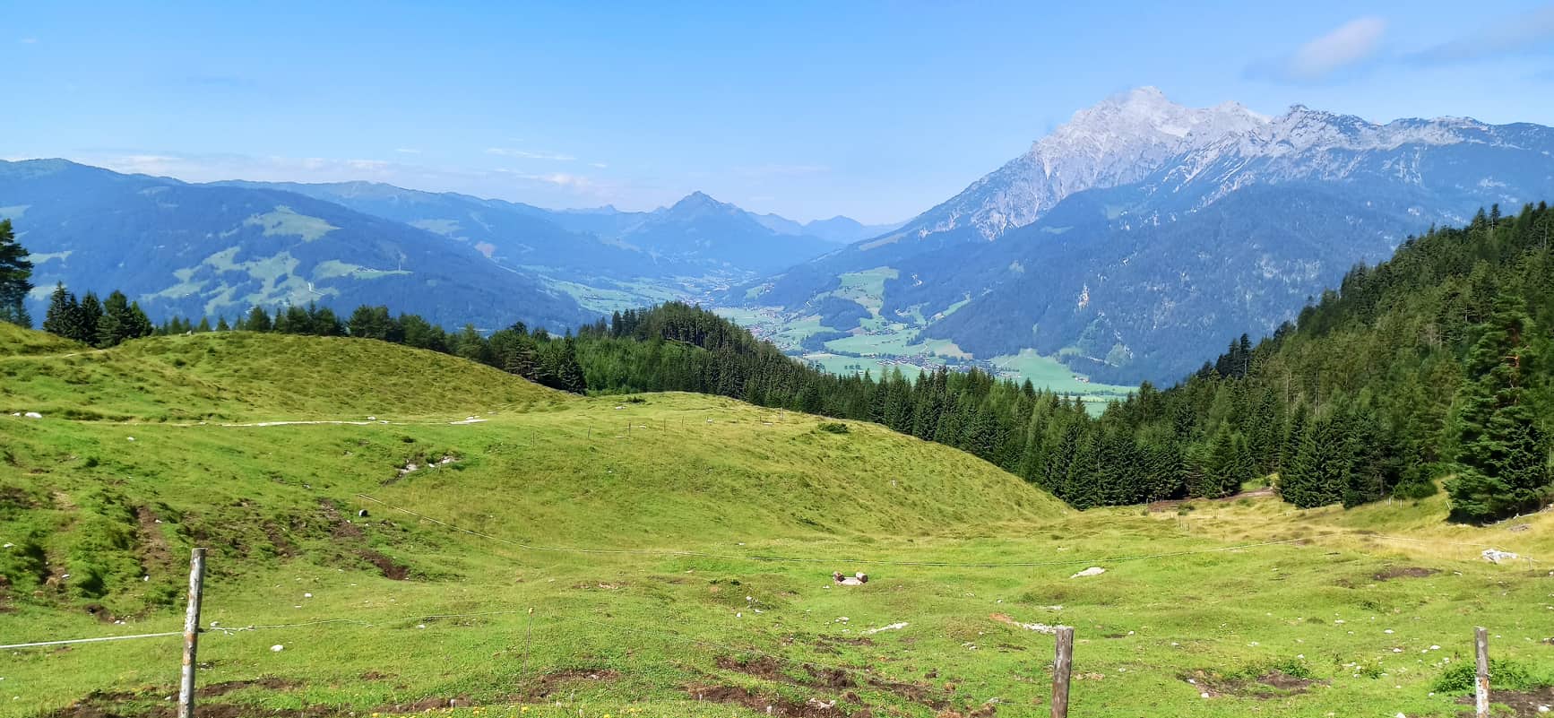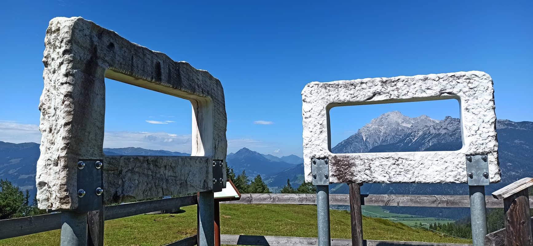 Abschließend empfehlen wir euch, vor dem Abstieg unbedingt noch ein bisschen im Almgebiet umherzuschlendern. Einige Meter leicht schräg aufwärts der Steinalm findet ihr eine tolle Aussichtsplattform mit einer breiten Panoramatafel, die euch all die Gipfel näherbringt. Etwas weiter vorne habt ihr sowohl den Saalfeldener Ritzensee als auch den Zellersee wunderbar im Blickfeld. Und last but not least könnt ihr diese wunderbare Aussicht durch ganz besondere Bilderrahmen genießen, angefertigt aus Sölktaler Marmor wurden sie dort optimal platziert und dienen euch als Ziermotiv für wunderschöne Urlaubsfotos.