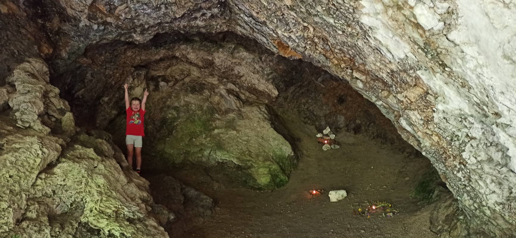 Das erste Highlight auf der rund 2,7 Kilometer langen Wegstrecke ist das Kühloch. Diese Höhle ist von erdgeschichtlicher Bedeutung und lädt zu einer ersten kleinen Verschnaufpause ein. Wer’s gerne kühl hat, erkundet das Innere, bückt sich um möglichst weit reinzukommen und erfreut sich am einen oder anderen Teelichtlein, welches hier angezündet ist. Vor der Höhle befindet sich eine der reichlich angebrachten Sitzbänke entlang des Weges.